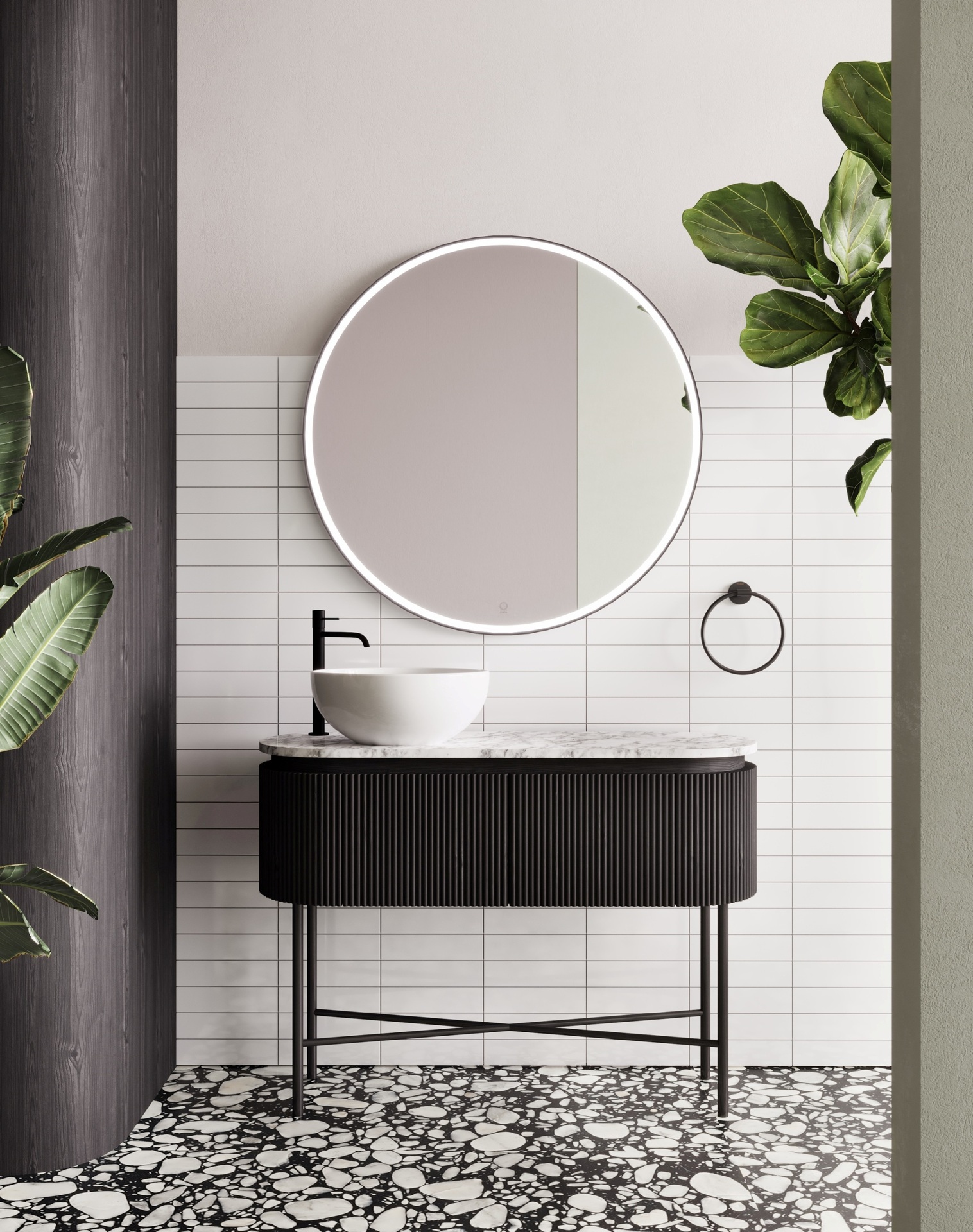 Lustro piaskowane podświetlane to idealna pomoc przy codziennym makijażu i wykonywaniu zabiegów pielęgnacyjnych. Okrągła tafla sprawdza się również jako element dekoracyjny każdej nowoczesnej, eleganckiej łazienki. Przykuwa wzrok, a w zestawieniu z prostymi bryłami pozostałego wyposażenia sprawia, że całość pomieszczenia wygląda interesująco.